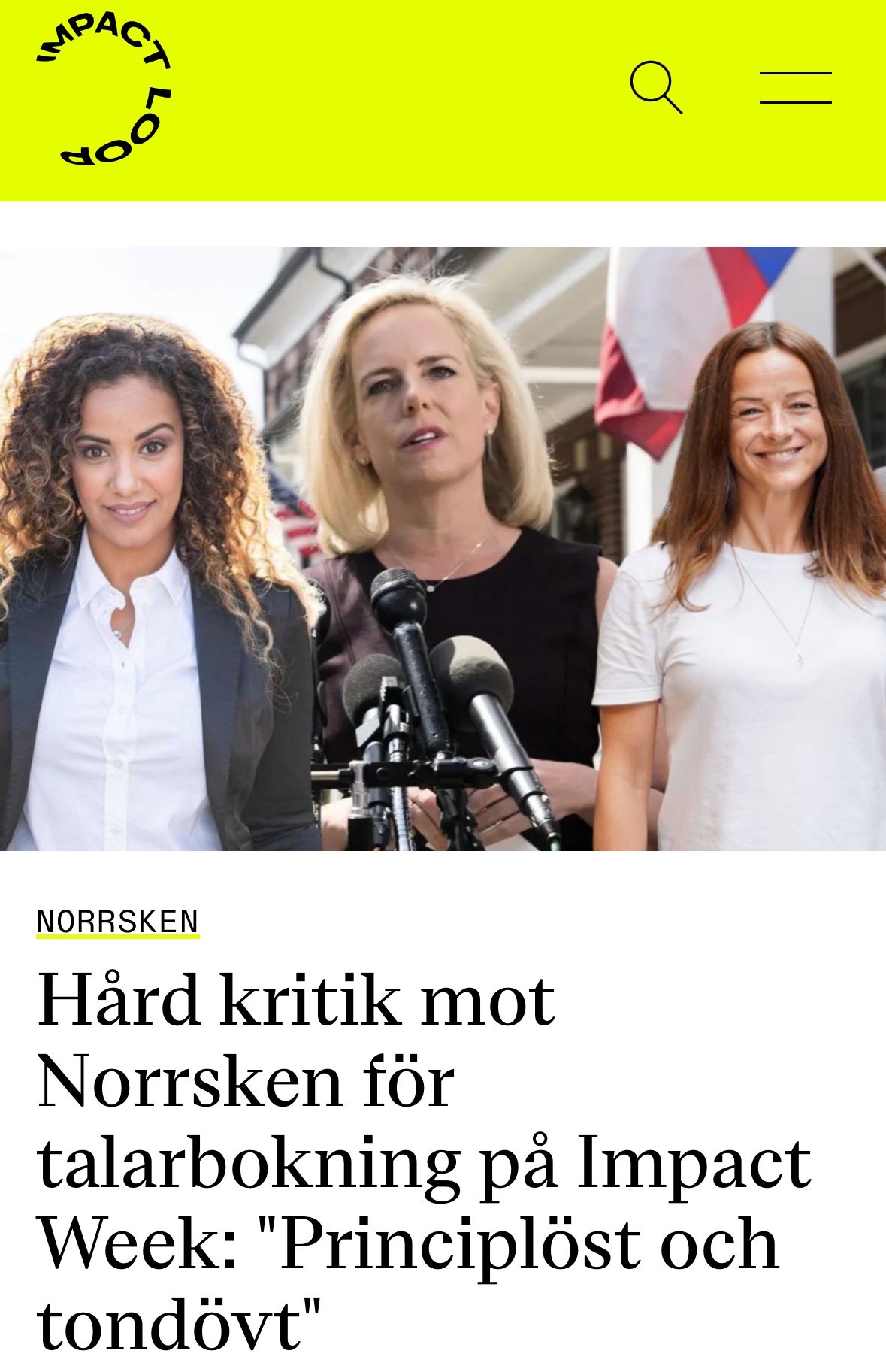 Kirstjen Nielsen, Trumps tidigare minister för inrikes säkerhet har bjudits in av stiftelsen Norrsken för att tala på deras stora event i Barcelon i höst. Är det rätt av Norrsken (som jobbar för att boosta idéer, företag och samhällsaktörer som verkar för en grönare och mer hållbar värld) att ställa Kirstjen Nielsen på en scen?