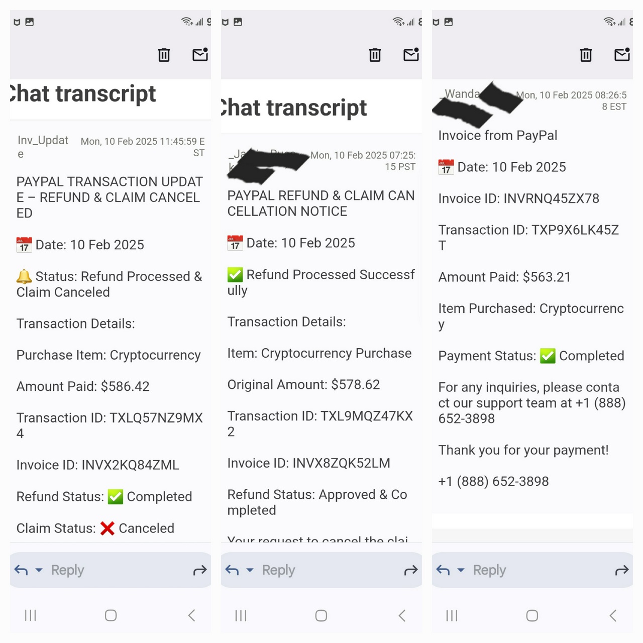 ANSWER: They are all FAKE emails “charging” me or “refunding” me for services I never had rendered.