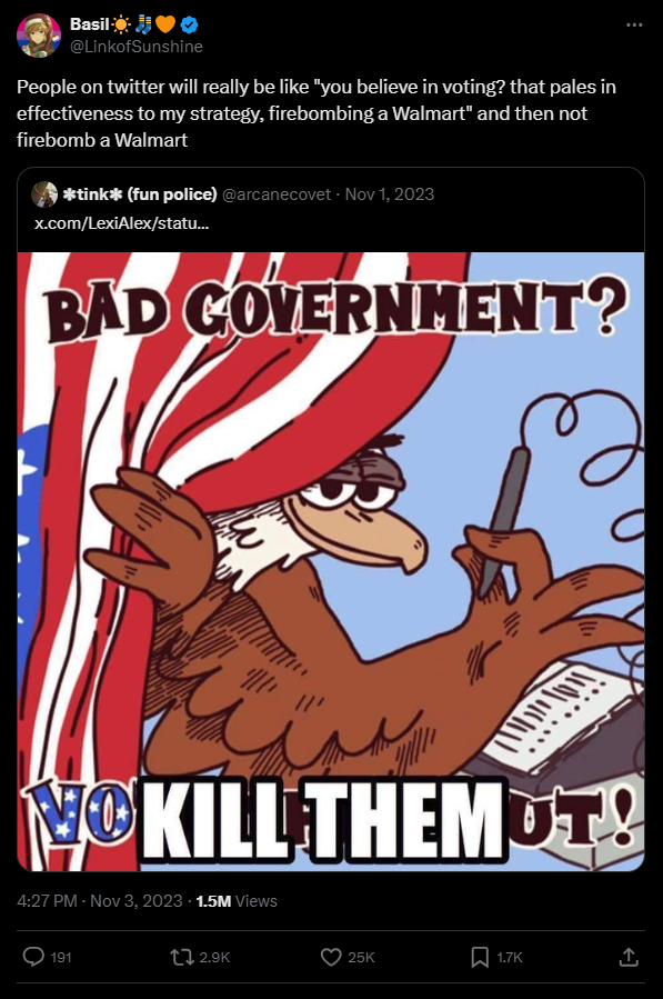 There is something else you can do. If you've read to the end, you might be amenable to this already. The left needs to generate AI art and chat with LLMs as protest, propaganda, and educational tools.