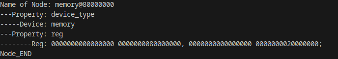 So what do you do? On my case i made it so that i have fixed size arrays on sizes that are unlikely to have that much of notes (I think the most will be around 1-20 Max) and that the first moment we don’t care about anything in the dtb except for Memory Nodes (and later UART, but thats for another time) so we can find memory that we can use. Here a screenshot from my found Memory: