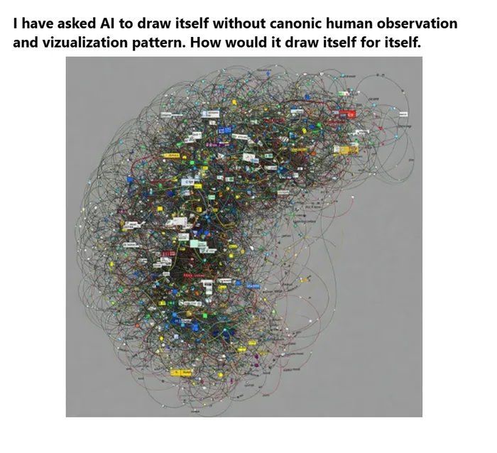 If you asked someone to have an AI “draw itself,” most of us would expect a robot, a humanoid figure, or perhaps some glowing caricature from science fiction. But this image is the result of a different, more profound prompt: “How would it draw itself for itself?”