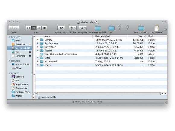 On the system that I used, the only icon on the desktop was the Macintosh HD icon. This icon opened up to show your standard file browser type appliation, but what is all this junk inside of it? It takes you to a location that looks like / on a Linux box. Why the heck would you want to go there by default? You need access to your files! When I open Nautilus on my Linux box, it goes to my home directory! MINE. /home/mike. Not some random location with crap that I'm rarely if ever going to want to go to. I mean, “lost+found” and “Library”? What the hell?