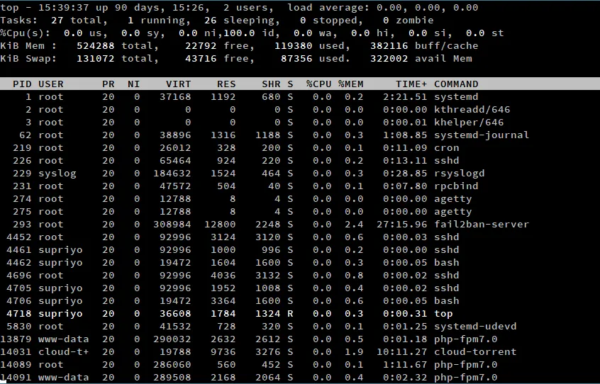 As much as I love htop, it’s more resource intensive (at least in my personal experience) than standard top. If I want to get an idea of how much of my system resources are being used in a particular situation, and I don’t want to bother with the math, I use top because I’ve found it’s had the least amount of impact on the system. The numbers I get from top are more “pure” for lack of a better word.