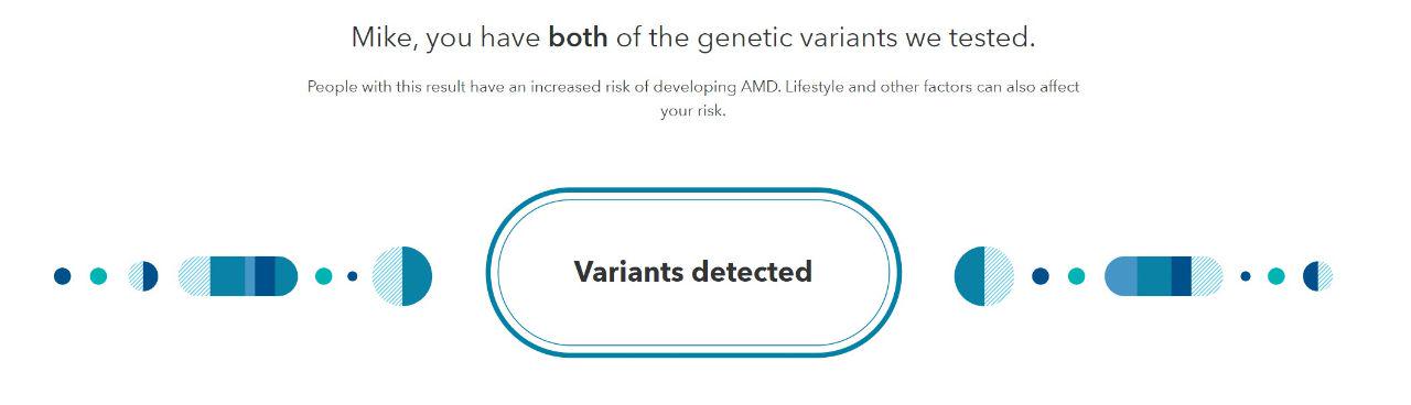 Of course just because I have these genetic variants, it doesn’t mean I’m going to actually develop AMD, it just means my chances are better than average.