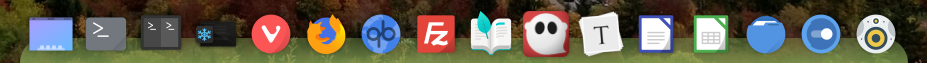 - The next three icons are my terminals. MATE Terminal, Tilix, and Snowflake. I've already written a post about my use of three of them instead of just the one. Of course, I still have the Guake hiding up above.