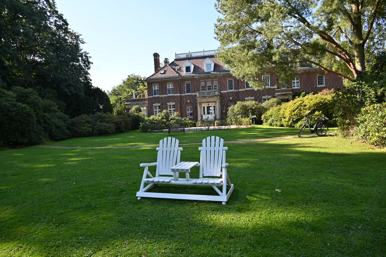 Arthur Donner hat die Architektur der ostamerikanischen Ostseeküste nach Warnsdorf gebracht und, wenn man das Anwesen betriff, umfängt einen der großzügige Park, die klassischen amerikanischen Gartenstühle, Adirondack Chairs, strahlen dort mitten auf dem Rasen in weiß, vor dem Anwesen fühlt man sich gleich in Übersee.
