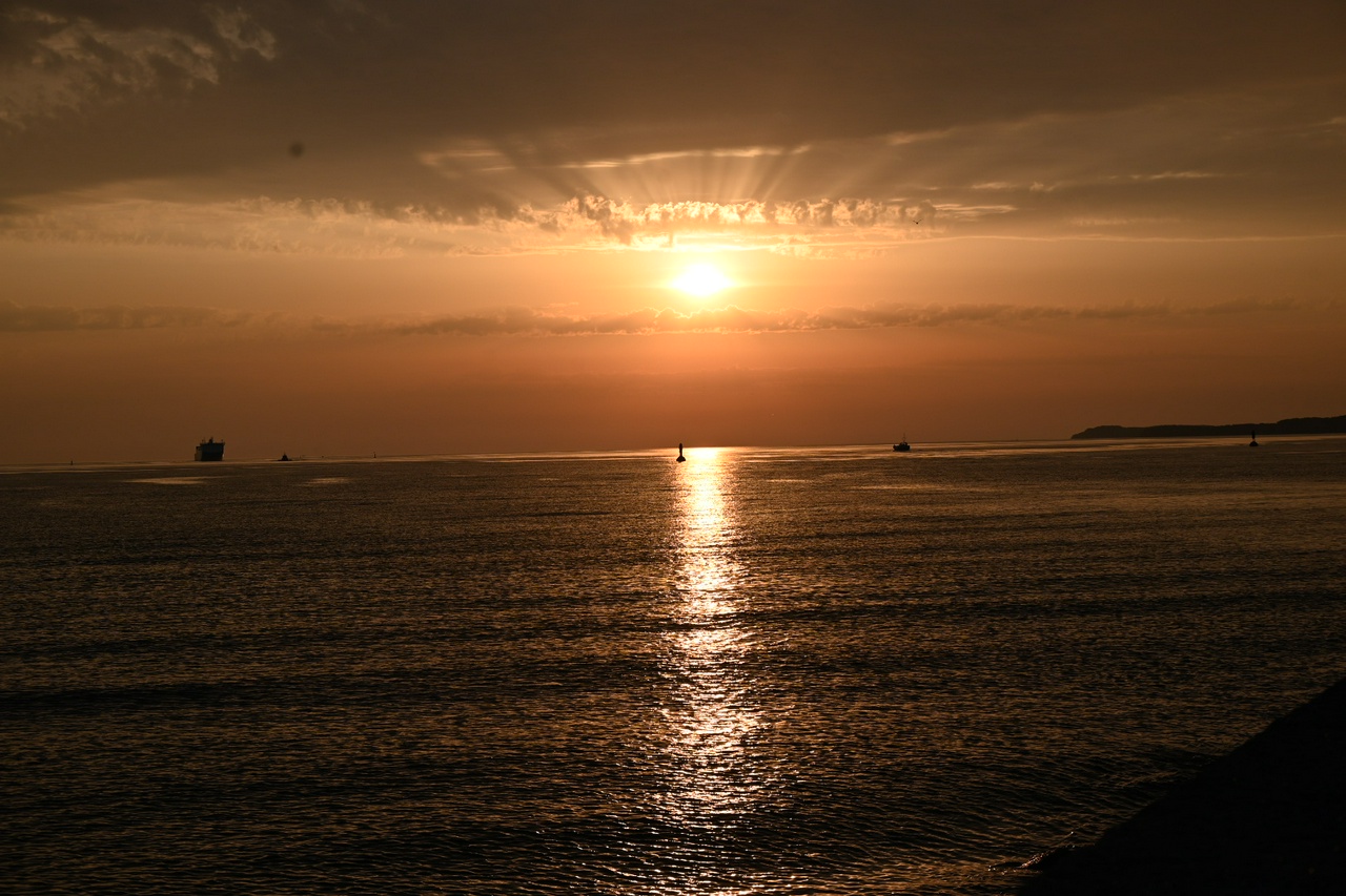 Von weitem rollen die Donner wie ungehaltene Unwesen am Horizont bis sie sich explosiv am Abendhimmel entladen. Blitze flammen auf. Das Wasser schüttet auf die Erde. Laut und im Dauerton ertönt eine Skandinavienfähre vom Strand herauf.