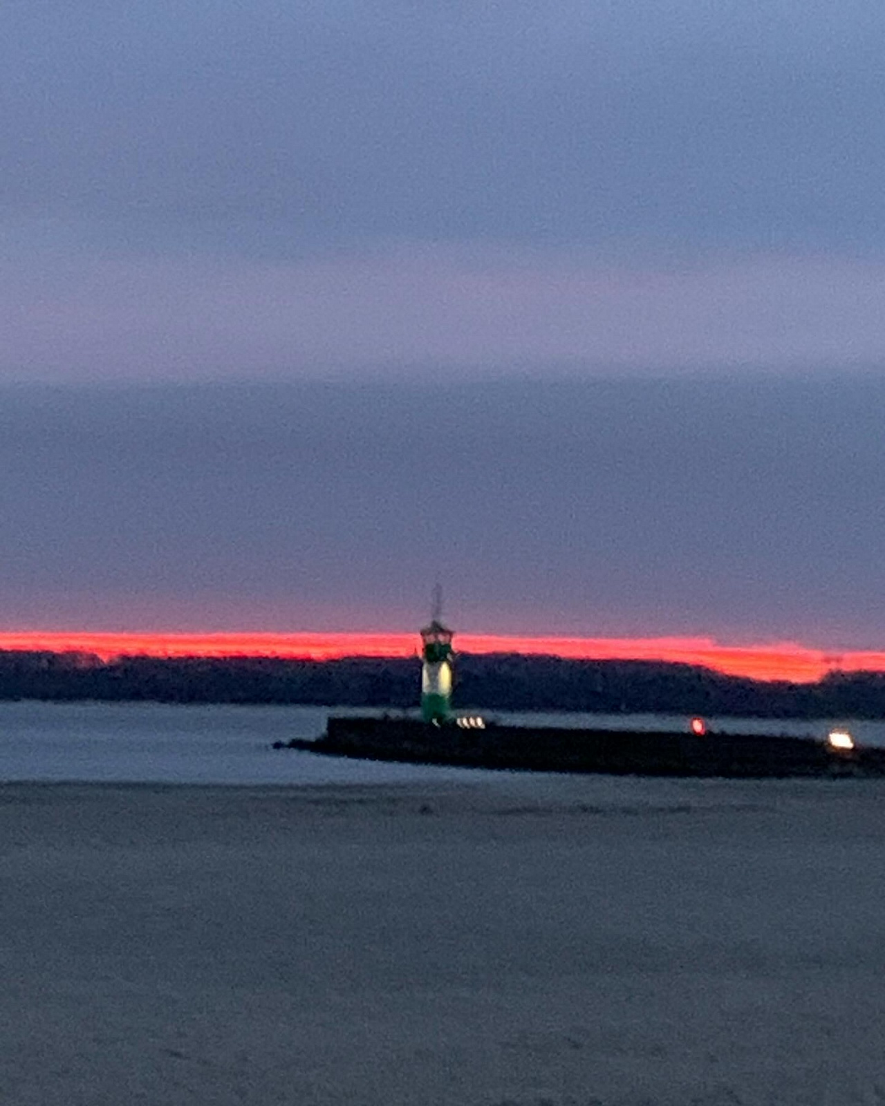 Neben dem grün-weissen Leuchtturm an der Nordermole