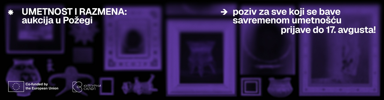 Zadruga vizuelnih umetnika, Udruženje Kulturni sklop i lokalna zajednica Požege pozivu sve koji stvaraju u polju savremene umetnosti – bez obzira na formalno obrazovanje ili profesionalni status – da predlože umetničke radove za prvu aukciju zadruge, koja će biti organizovana kroz izložbu tokom septembra u Požegi.