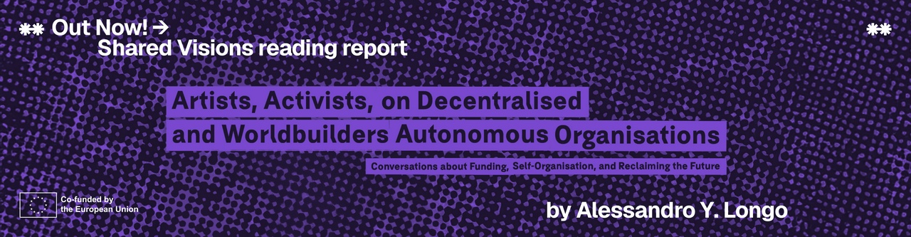 In the first reading group of the Shared Visions project, we read Artists, Activists, and Worldbuilders on Decentralised Autonomous Organisations: Conversations about Funding, Self-Organisation, and Reclaiming the Future, edited by Inte Gloerich. Published by the Institute of Network Cultures in 2025, this collection of interviews explores how Decentralised Autonomous Organisations (DAOs) and other participatory structures can help artists and cultural workers reclaim agency in their economic and creative lives. The interviews present some of the most intriguing experiments happening at the periphery of the crypto-sphere, where artists, organizers, and technologists try to design and build alternative economic models for sustainable cultural work, leveraging blockchain technologies to build resilient frameworks for communities facing increasing precarity and fragility. In Gloerich’s words, these ‘artists and activists engage critically with the socioeconomic setup of their sector, activate communities and collectively build tools and infrastructures to prefigure different futures.’
