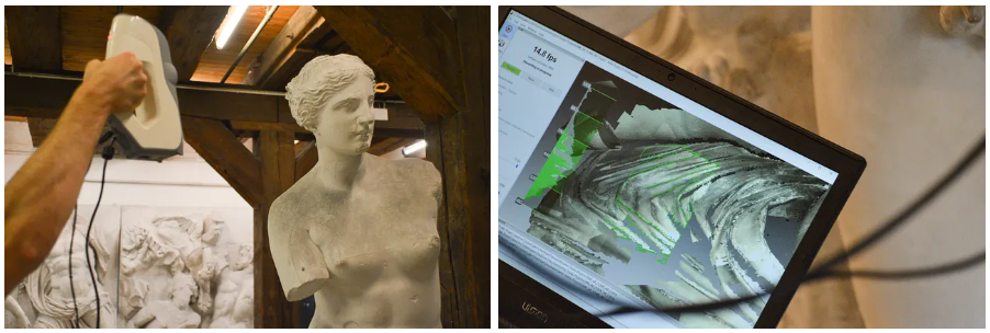 Now that a few months have gone by after we first released the 3D models, we can look back on a time of considerable attention from traditional media such as TV and online art media, but also of extensive interaction with individual users and artists who use the models. For example, I have corresponded with an American user on Thingiverse, Jerry Fisher, concerning the unadulterated, unmodified appearance typical of our scan of the Venus de Milo. He greatly appreciated the fact that to his mind, the scan was more faithful to how the sculpture looked when it was originally found (in several pieces) than the original sculpture now displayed at the Louvre in Paris.