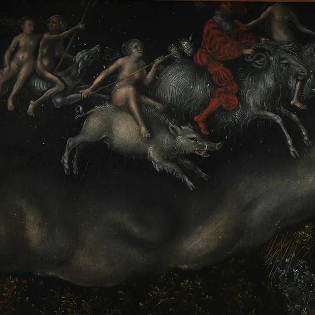 Notice this detail in the upper left corner. It’s been interpreted as a gang of witches riding on demonic beasts that look like they could have been cast in silver.