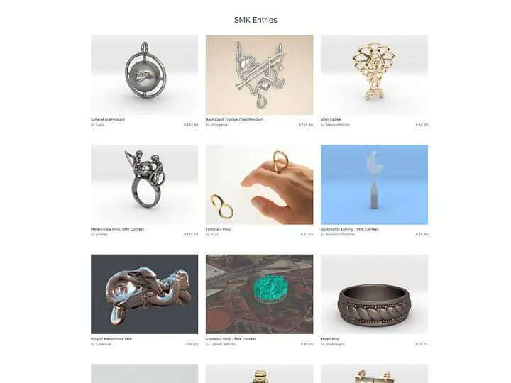 A selection of the designs that we’re seeing in the Art Jewels design contest created by SMK Open and Shapeways [link no longer active]