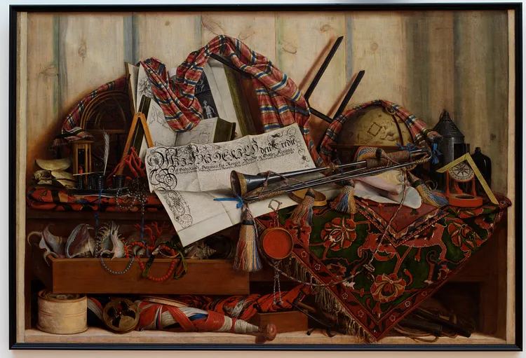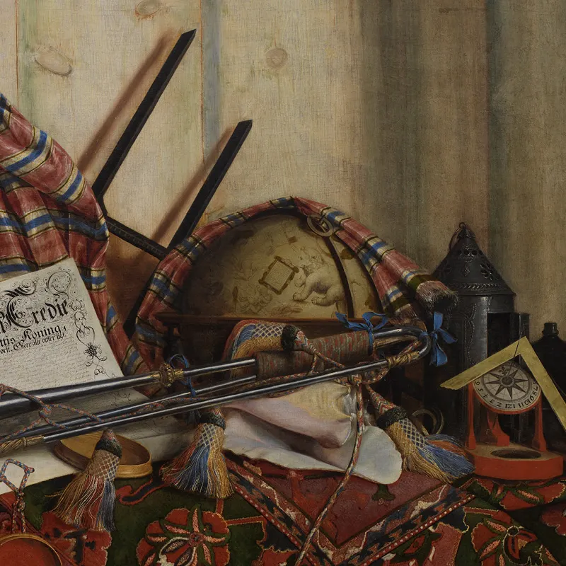 Cornelius Norbertus Gijsbrechts, Trompe l’Oeil with Trumpet, Celestial Globe and Proclamation by Frederik III, 1670, Statens Museum for Kunst. Public domain