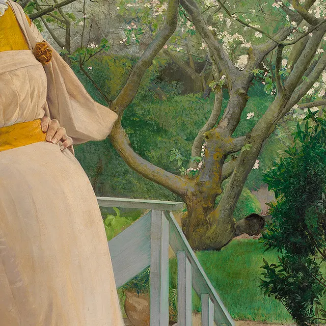 In other words, you all have an additional week to look closely at the artworks, be inspired, and create new designs. In this post, we want to highlight a few of the stunning details of two masterpieces in our collection: A lush garden view with The artist’s wife by Danish painter L.A. Ring, and a spectacular piece of optical illusion or Trompe l’oeil painted by Gijsbrechts, Flemish painter in the service of the Danish throne.