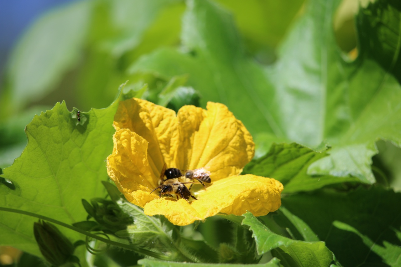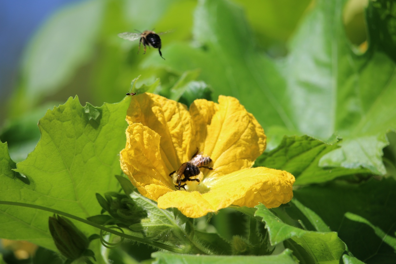 I saw the following interaction on one flower inside my Dad’s garden. It’s started off with a single bee/hornet? enjoying a flower.