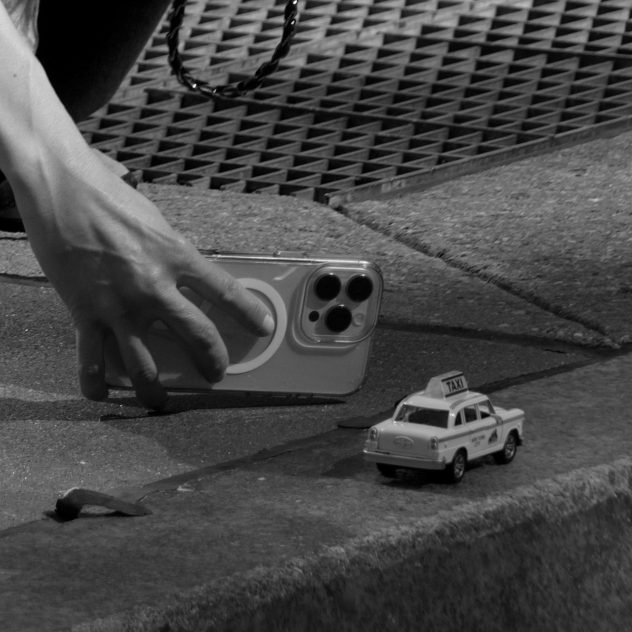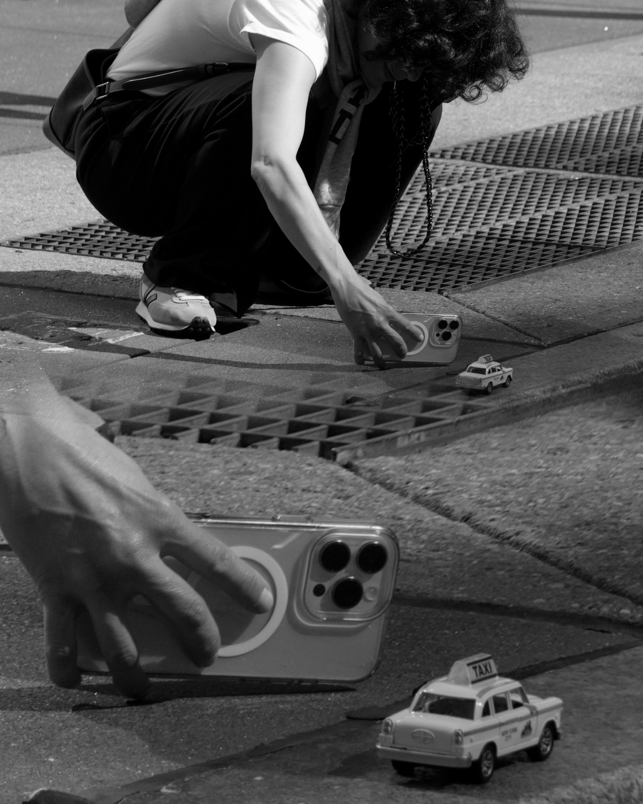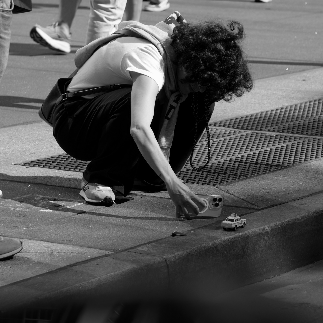 While strolling through the city, I noticed a woman, likely a tourist, purchasing a souvenir, a NYC yellow cab replica. She was with her family, and after the purchase, she paused and asked them to wait a moment. Carefully, she placed the tiny cab on the edge of the sidewalk, pulled out her phone, and snapped a photo.