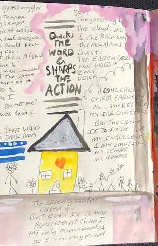 The grass didn't care anymore than the insects. So, as the darkness grew first too much to see my sketchbook and then dark enough to calm my mind, I folded up and crawled back to a long peaceful night.