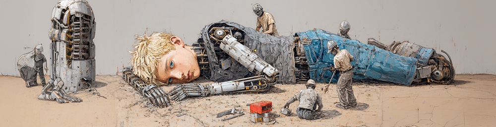 “See,” he says smiling, “with two people it’s easy. Here, ya wanna hold it?”