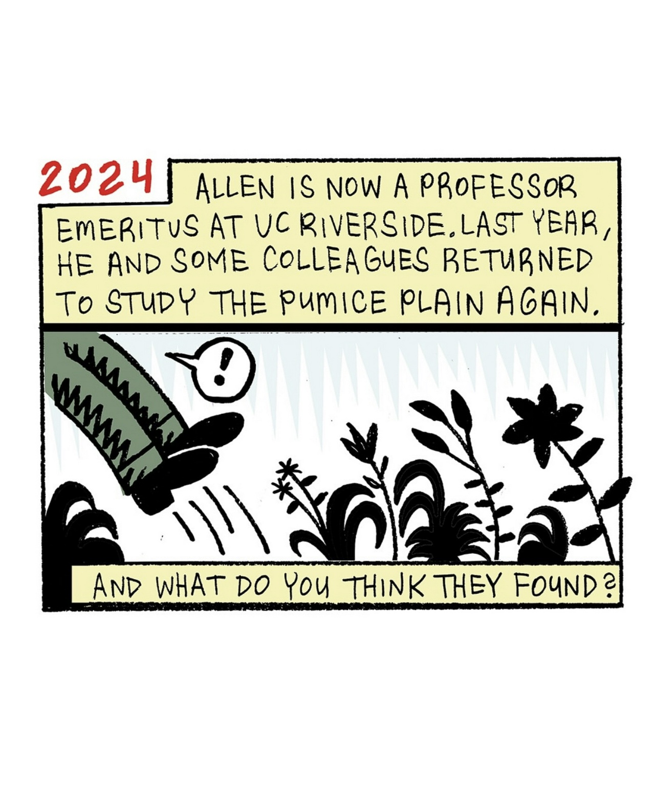 Fast forward another few decades. Allen is now a professor emeritus at UC Riverside. Last year, he and some colleagues returned to study the Pumice Plain again. And what do you think they found?