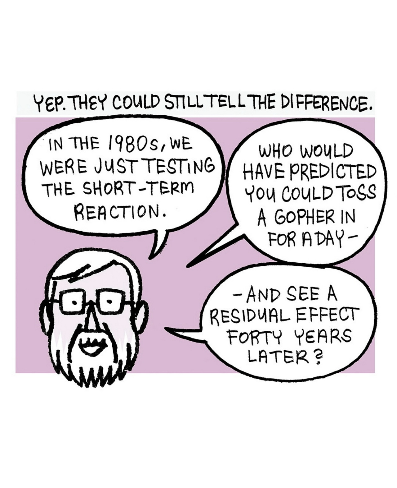 YEP. THEY COULD STILL TELL THE DIFFERENCE. “In the 1980s, we were just testing the short-term reaction,” Allen said. “Who would have predicted you could toss a gopher in for a day and see a residual effect 40 years later?”