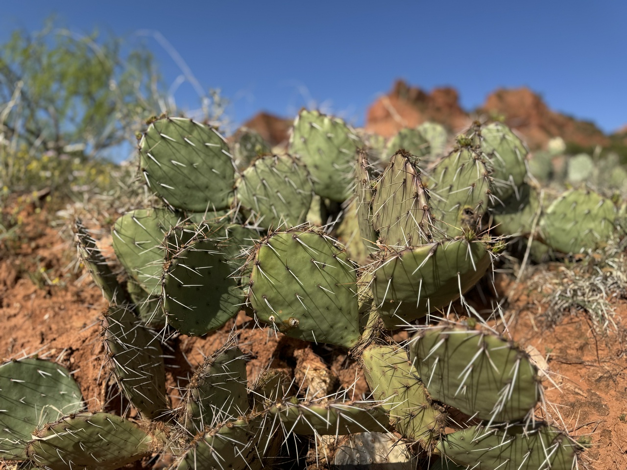 Cactus and buffalo droppings add interesting texture to the sage and evergreens.