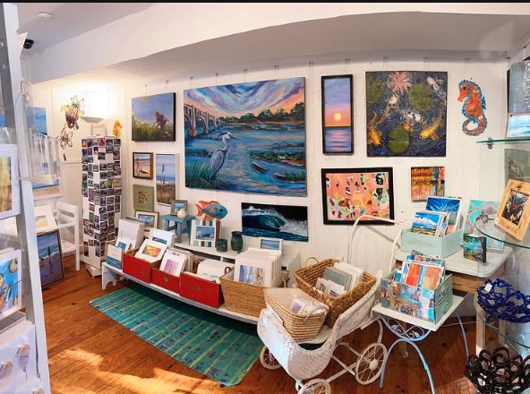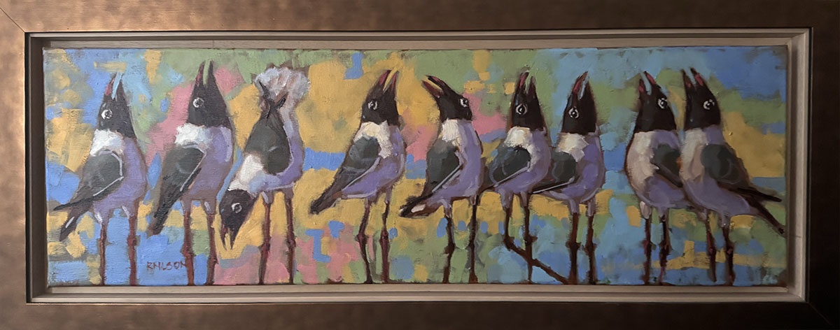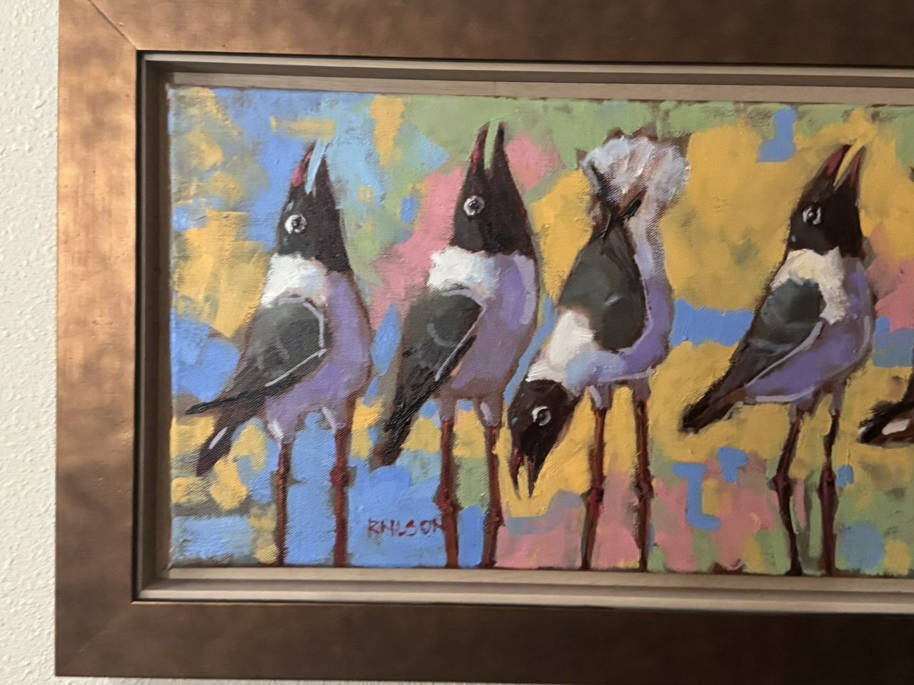 The floorboards creak as I walk through the rooms of this 100-year-old seaside building. Not the dusty, gritty groan of a house in the final throes of its existence... these are the creaks of a well-loved and lived-in place. The boards are golden yellow, something that is easy to keep clean and keeps all your attention on the walls, which are the real star of the show. We have driven halfway across the continent to be here. This gallery wasn't the goal, just a happy discovery when we came here to experience the hearts and faces of those we love. Every year in the fall, they rent a big swanky beach house and invite us, their dry, weary friends from Dust Meridian. And are we happy to accommodate! The homes are always spectacular, the food terrific, the scenery is quintessentially beach... and the faces and hearts—world-class. What fool wouldn't make this pilgrimage every chance they got? Sand, beer, laughter, and the sound of gulls. Perfection! Tonight, we have calved off for a side mission. Two artists always on the prowl to make art or look at it, we have stumbled upon an artist's co-op: KDH Cooperative Gallery & Studio. Not quite as creatively named as we'd like, but perfectly functional and serving to draw these two moths to the promise of colorful flames. The 4-foot-tall letters of 'GALLERY' on the fence are what really got our attention. Someone should help them with their main signage though. Yikes! But, bonus points for the winged zebra out by the roadside. Well played, KDH Cooperative! The art here is terrific. It is cram-packed! I like all galleries. But sometimes, they drift toward too austere. Modern tends to do that. But a place like this, they know their clients. Tourists flush with cash looking for a place to buy a memory. Once, in West Africa, we found ourselves at a loss. Western tourists buy, buy, buy. We experience, but we are always looking for a t-shirt or a keychain. West Africa does not suffer that foolishness and we found ourselves quite literally without anything to buy! That is not the case here. The art is beautiful and colorful, well-crafted, and on brand for this oceanside town here on the OBX. From the parking lot, I can see the Wright Brothers Memorial Monument over the treetops, and behind me, over the din of traffic on Hwy 158, I can hear the hush of the ocean. All manner of crabs and birds, landscapes, not just a few planes. Ceramics and photography complement the oils and watercolors nicely. There is a very clever artist who has painted typical beach snapshots but blurred, like the camera was shaken. The kind of picture you would throw away, but here, in 24x36, it is very evocative. A universal moment for the beachgoer: the bad photo. Everyone and no one at the same moment. The artists are doing their level best to commodify the Outer Banks experience here in Kill Devil Hills and its adjacent places. I am smitten with a fantasy of moving here and painting my own version of life by the sea. There aren't many pastels; maybe that could be my niche? Or, I could sit all day and fill 24-page sketchbooks and sell them as one-off novels. I'd write some droll story about being lost at sea or finding love on the beach... maybe rip off The Old Man and the Sea and call it The Young Girl and the Tide Pool... I could splay them open in a frame that allowed you to remove the book, flip through it, change the page, and put it back. An interactive piece. Imagine that at your next cocktail party, you white-collar, blue-blood northeasterners! Well, North Carolinians, I guess. To people travel from the NE this far south? This place is not an easy drive from far away. It's like you drive, drive, drive to get to the beach, then drive, drive, drive to get to the OBX. Regardless, I think my original sketchbook scheme might be my retirement plan. My lady and I’ll rent a hovel, or an empty lot, and live in our van and live the bohemian artist's life. Broke, naked, and tan. Just us, music, and our art, made with love. But for now, we find our piece. Our tangible thing that, every time we look at it, will re-fire all of those synapses we are forming during our time here.  9 Birds. We titled it. It was called Plovers in the Surf, but there are 9 birds, and there are 9 of us in the house. 9 warm hearts and buoyant faces. A pair of newlyweds, two of our oldest friends, their daughter (since married, but single then; and with whom I recently learned I have a fence to mend) and her best friend. And us, including my wife's sister. I do not know today that she will die from cancer 4 years from now. The painting is a celebration of color. All but one of the birds gaze longingly at the sky, while one has his/her beak pointed straight at the ground. We will talk about who is who in the painting. At various times one bird will be me, another her, then the others' names will change. When I lie in bed at night, I will be able to see the work in the dim light of the room, and recall the conversations we had, the meals we shared (at night and for breakfast, lunch; fend-for-yourself), the moments together. Playing cornhole, dragging the wagon of beach stuff to the beach, seeing languid bodies spilled over couches reading novels, or hunched over tables assembling puzzles. Playing pool, boardgames, and beer. Swimming pools and hot tubs, sunbathing and competing for best tan (the Latin girls always had an advantage). One year, one of the women decided to show off her newly sculpted body with a gold bikini. It was a sight beheld. Goldfinger would have approved. Our birds sport no bikinis, though. Naked as God intended, save for the beautiful plumage they make themselves. We spot two other pieces today. A ceramic octopus that will delight our friends. Well, her... he, I'm not so sure about. We always foist art on them, and he... well, he seems to enjoy it, but doesn't have the same thrill she does. Different personalities is all. The other, a simple painting of a fish for my sister. Something for he